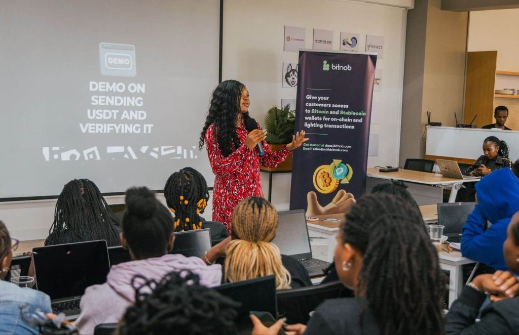 The Bitnob collaboration culminated in a three-day developer bootcamp and hackathon in Nairobi, bringing together 70 female developers—the largest female-only Bitcoin developer bootcamp held in Africa to date. Participants worked directly with live APIs, implemented Bitcoin payment flows, navigated real integration failures, and presented working MVPs under demo conditions. The format surfaced real trade-offs between ambition, system stability, and delivery readiness.